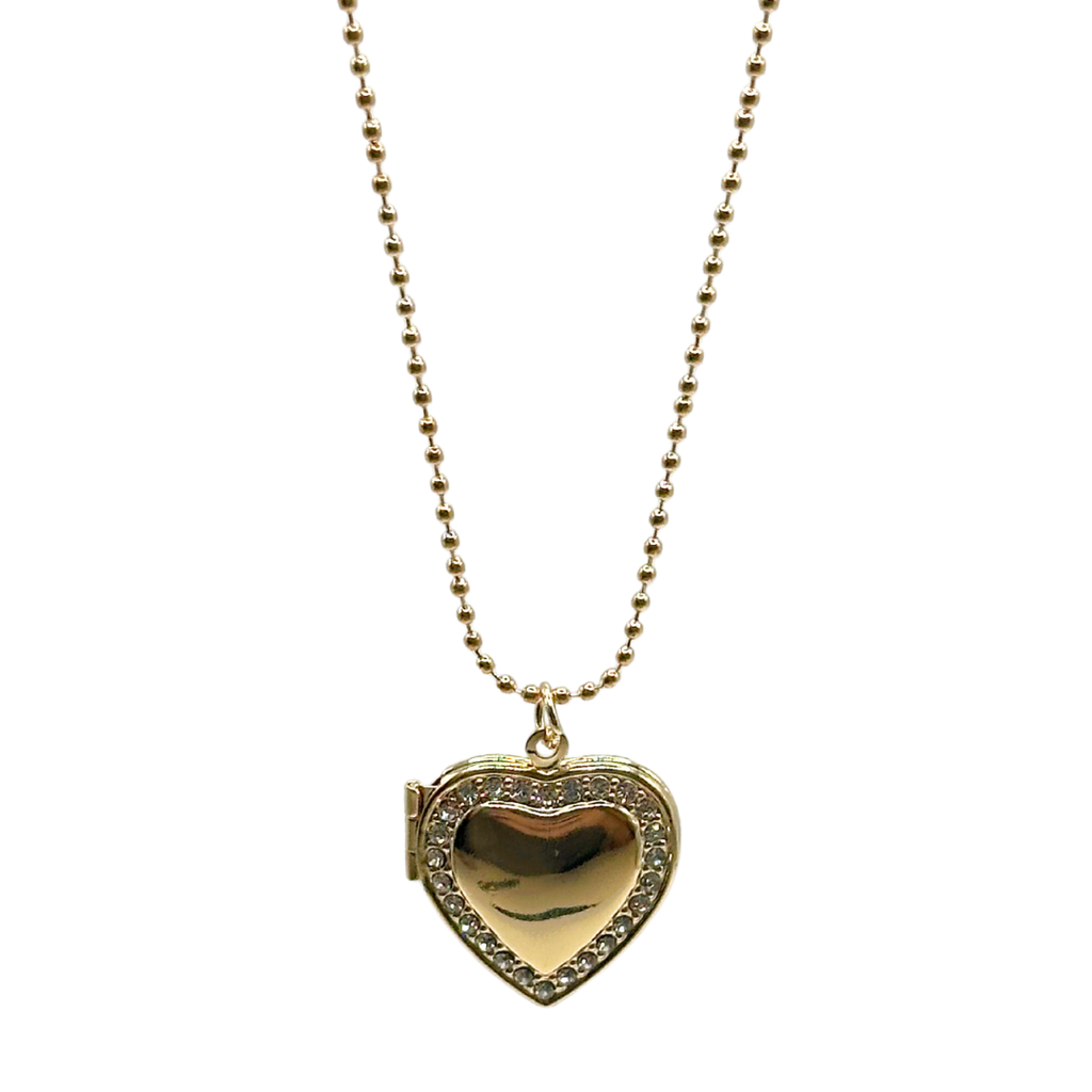 Diamanté Love Heart Outline Necklace Locket - Gold