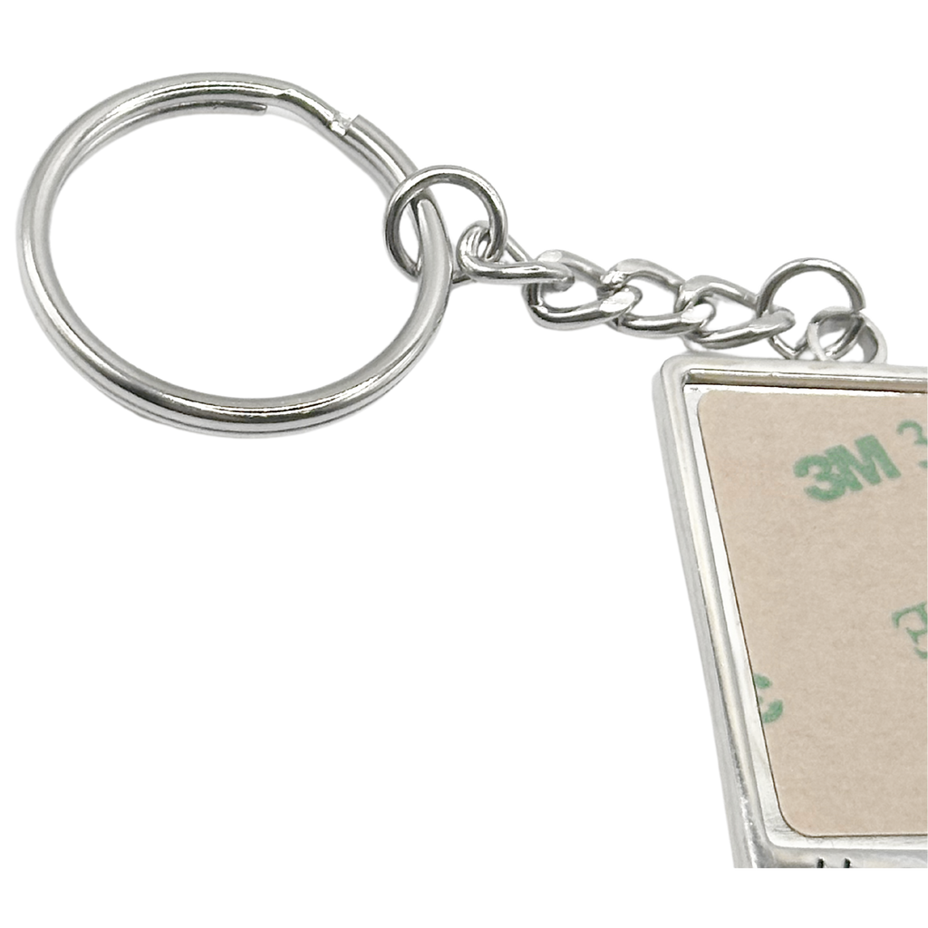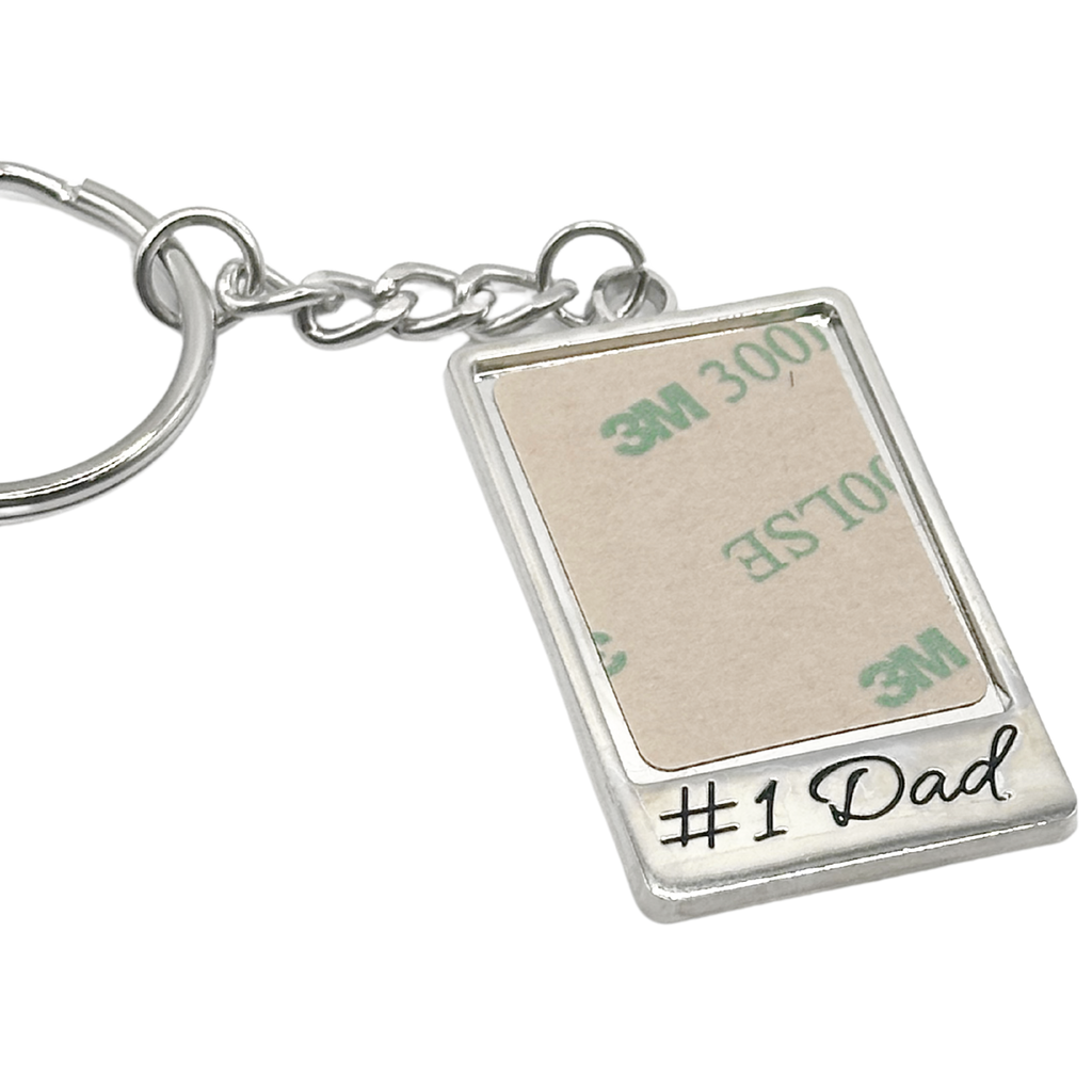 This is a Number 1 No. One #1 Dad Keyring. This is the colour silver, whilst the rectangle section is silver and comes with a sticker and a shiny white sublimation plate, ready for you to add your personalised image.